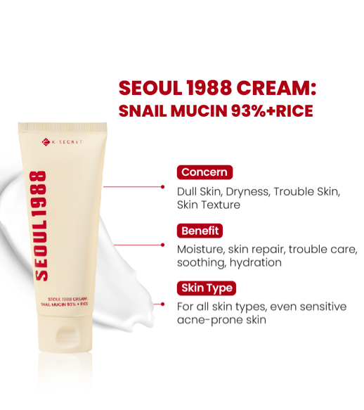SEOUL 1988 CREAM : SNAIL MUCIN 93% + RICE 100ml